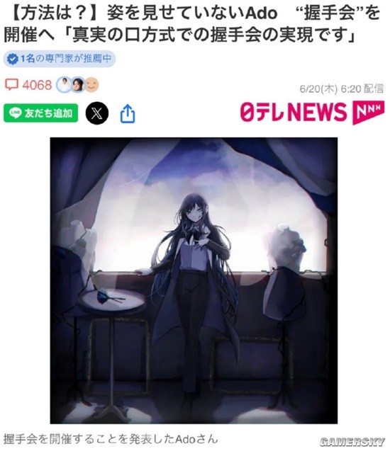 20日,据日媒,从未在公众面前露过脸的日本歌手Ado为庆祝第二张原创专辑发售,将举办握手会。