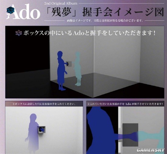 然后这个握手会依然不露脸,Ado会站在箱子里面,外面的粉丝看不到Ado,但可以把手伸进孔内,用这种方式来握手。