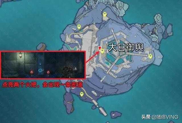 ②在下图位置,点亮两个火把之后会出现一条密道,从缺口处进去,在常夜时进入与阿倍良久对话。