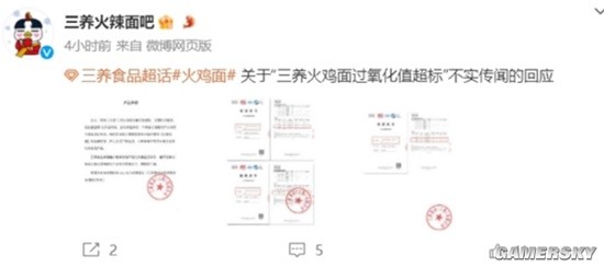 三养火鸡面辟谣过氧化值超标:长期吃会脱发诱发癌症传闻不实