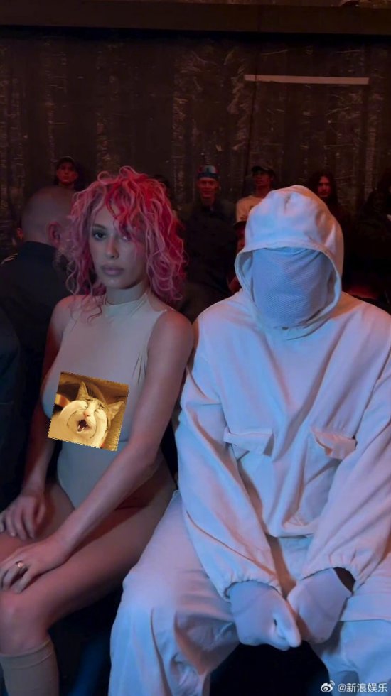 侃爷老婆比安卡穿连体衣看秀 侃爷全白色布料包裹