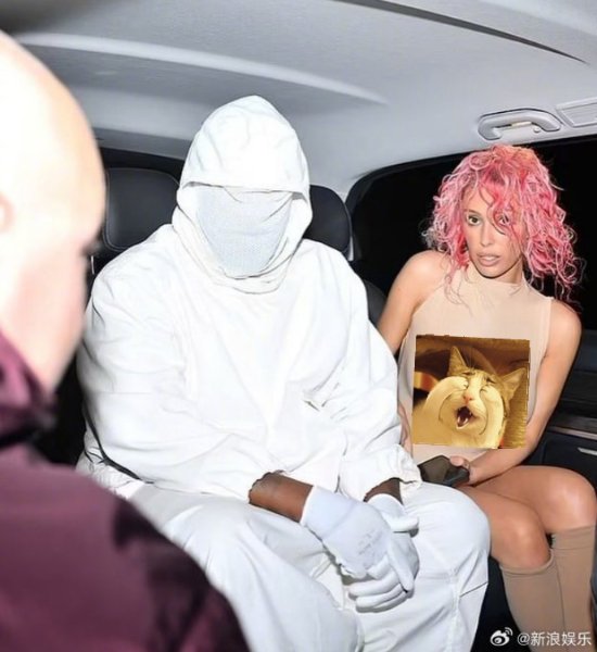 侃爷从头到脚都裹上白色布料,连手指尖也不放过,比安卡一头粉色卷发十分吸睛。一个看起来挺冷的,一个看起来挺热的。