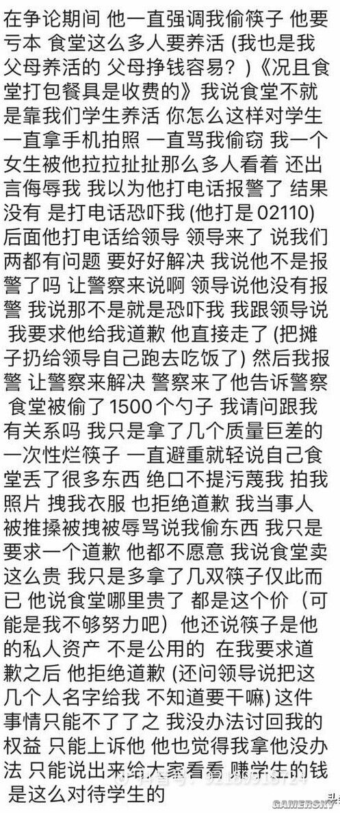 有人分析,女生大概率是寝室之母,帮宿舍其他几个人带饭辗转多个堂口,图方便在同一个老板这里拿了筷子,然后这老板一顿输出。