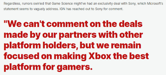 此外,IGN还提到有传言称游戏科学可能与索尼达成了独占协议,并认为微软在这段声明中可能进行了暗示。