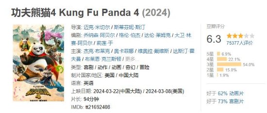 目前该影片豆瓣评分为6.3分,为系列最低。