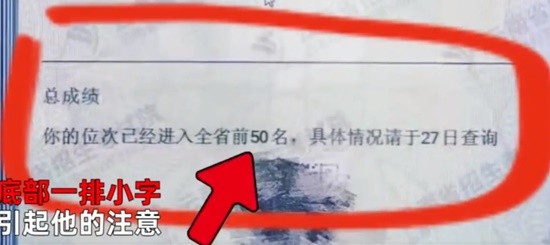 下方有一排小字,上面写着“你的位次已经进入全省前50名,具体情况请于27日查询”。整个查分过程,女生十分淡定,似乎早在意料之中,查分系统进不去的一个多小时是用看书度过的。