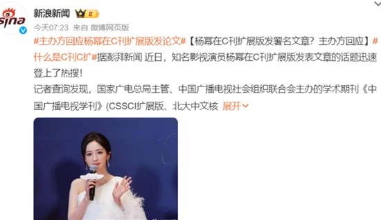 杨幂在C刊扩展版发署名文章 主办方回应:不收版面费