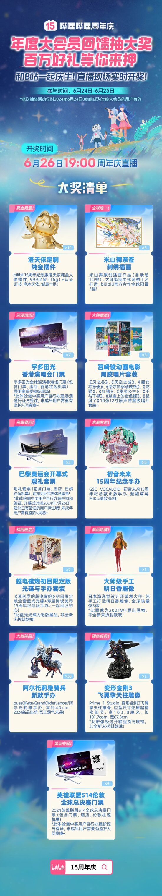 B站15周年庆典6月26日举办!奖池官宣:奥运会门票等