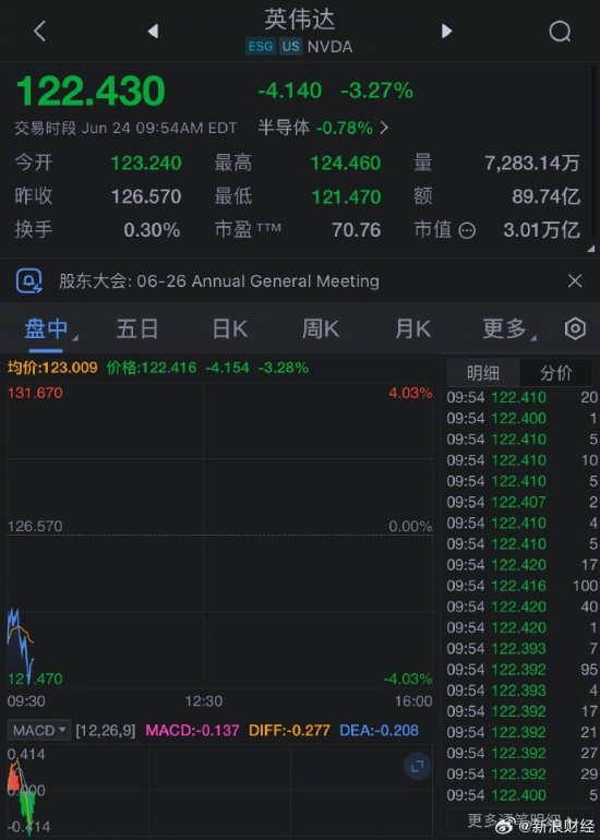 新浪财经消息,英伟达股价周一一度下跌3.2%,连续第三个交易日走低,恐蒸发逾3,000亿美元的市值。