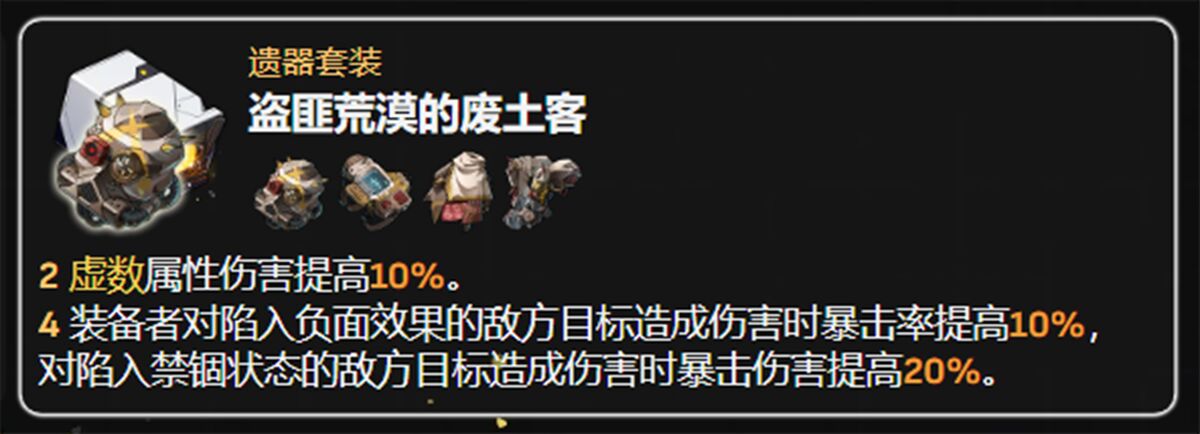 中后期换虚数专用四件套废土客。其实废土客更像瓦尔特的专属四件套。