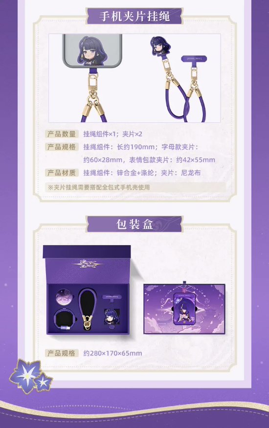 其中,移动电源的图案采用一体注塑开模工艺,数据线为紫色编织线身,手机支架为磁吸设计,手机夹片挂绳有字母款和表情包款两种选择。