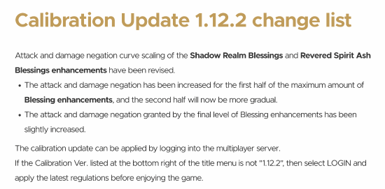 新补丁优化了DLC中“幽影树庇护”、“灵灰庇护”对攻击和减伤的强化曲线,前半段的攻击和减伤加成增加,最高强化等级提供的加成略有提升。