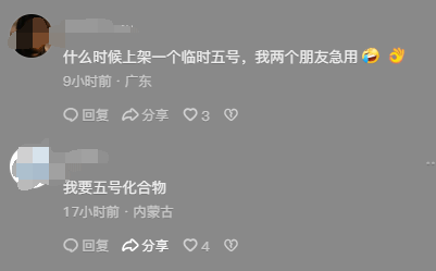 网友追问:“有没有5号化合物卖?”“我出500万美金买一支五号化合物。”5号化合物是剧中沃特公司研发出的药剂,喝下能使人获得超能力。