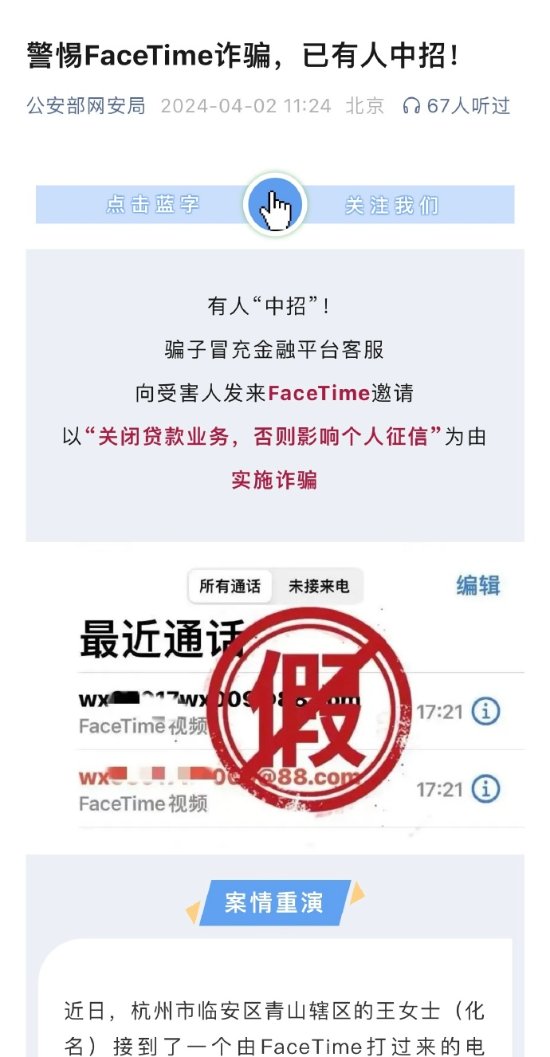 苹果用户警惕FaceTime诈骗:一男子因此被骗10万元