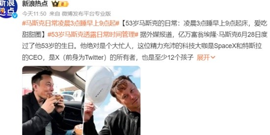 53岁马斯克透露日常时间管理 日常凌晨3点睡早上9点起