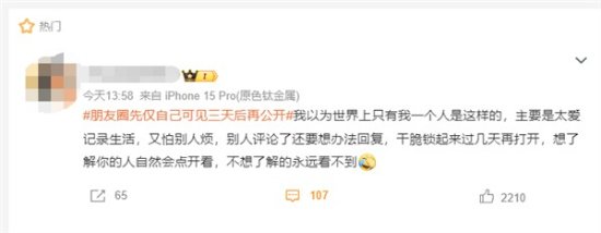 “微信朋友圈先仅自己可见三天后再公开”上热搜 网友:怕惹人烦