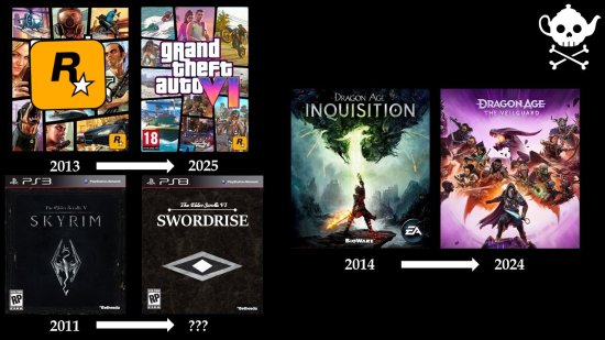 “关于3A游戏(或续作)这方面,工作室管理层可能会误导玩家,因为他们会说‘我们已经开始制作游戏了’,或者他们甚至会直接发布游戏的预告片,比如《老滚6》,尽管目前实际参与开发的团队规模还不到10人,”Mark Darrah讲到:“管理层会觉得这是一种并行开发,营造一种整个团队都在致力于这款游戏的现象,但而实际上只是几个人开了几次会,并没有完成多少具体工作。”