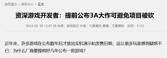 而对于发行商而言:“如果一家发行商近年业绩不佳,那么公布一个令玩家兴奋并激动的项目可以挽回玩家的信心”。