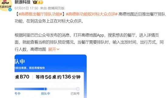 据新浪科技报道,高德地图近日推出餐厅排队功能,在到店业务上正在对标大众点评。