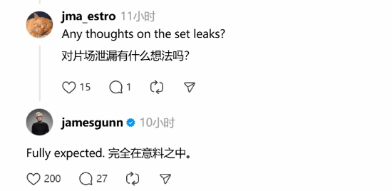对于一位粉丝在Threads上询问关于泄露的《超人》片场照片的问题,古恩回应道:“完全预料到了。”当被问及是否涉及了任何剧透时,他回答:“一点也没有。我绝不会在市中心的外景拍摄中拍摄重要的剧透。”