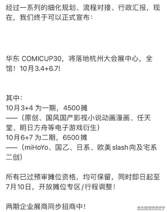 “但是场馆为我们预留国庆档期的超长假日,通过4天的展期,将达成CP30足够容纳26万平展区、总共25-30万人次的观展需求。每位摊主也能得到10万+读者的光顾。”