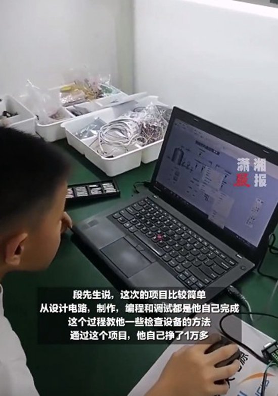 10岁男孩自学电气工程挣了1万多 独立完成相关项目