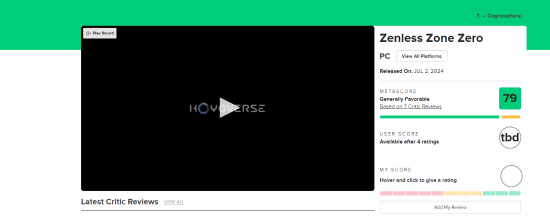 《绝区零》M站媒体均分79:多数媒体给出好评