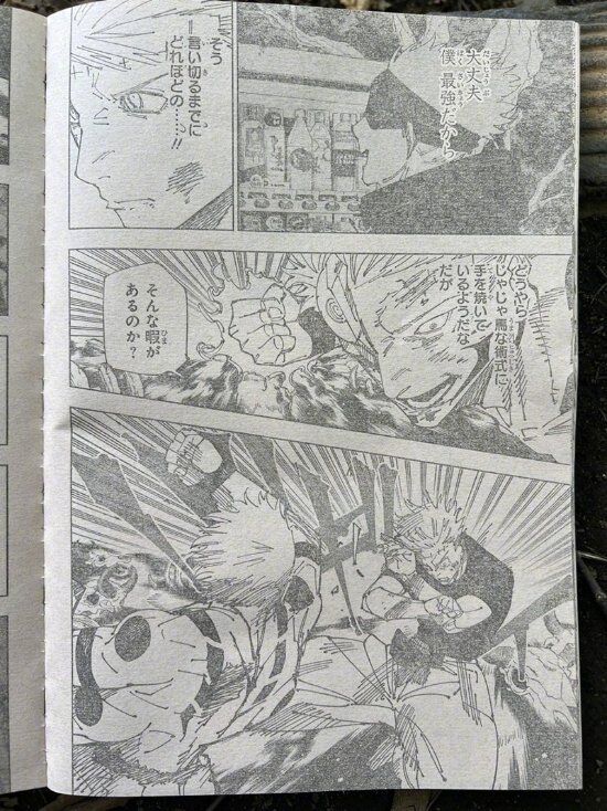 《咒术回战》262-2话图透来了,是的,本周更新的是262-2话,也就是上次那7页根本没画完。本次接着之前的战斗,还是乙骨忧太操控五条悟的身体和宿傩战斗,但是不能使用无下限以外的术式,也不能同时使用羂索的术式。关键时刻,录音机播放出了狗卷本人“不许动”的声音阻止了宿傩。