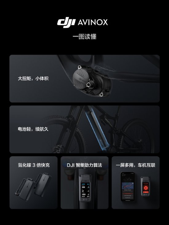 大疆首次涉足电助力自行车市场,推出了全新的DJI Avinox电助力系统。
