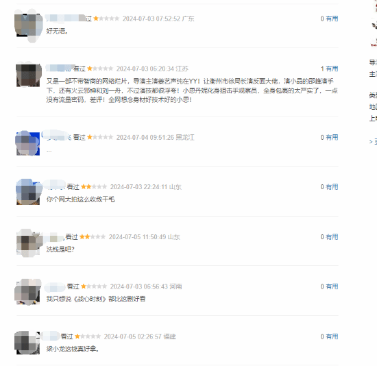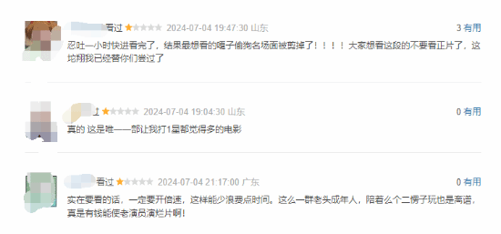 影片豆瓣早期评价出炉,截至发稿大部分评价都为一星差评,最高也只有两颗星。网友吐槽《硬汉狙击》从剧情、表演等各个方面来看都称得上是“烂片”“打一星就觉得有点多了”。