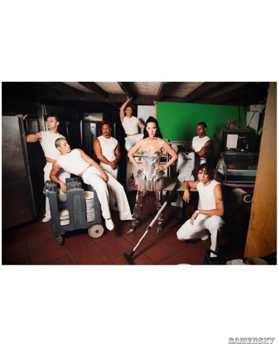 她还在脖子上挂了一个沉重的银色项圈,耳环挂在她的耳垂上,整个人blingbling的,闪耀且性感。