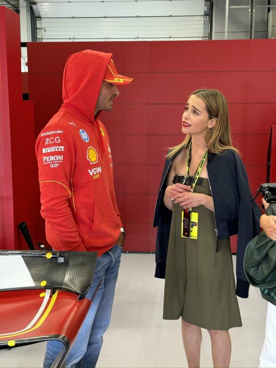 今日,“龙妈”艾米莉亚·克拉克造访法拉利车队,与赛车手夏尔·勒克莱尔、卡洛斯·赛恩斯畅谈,合影留念。