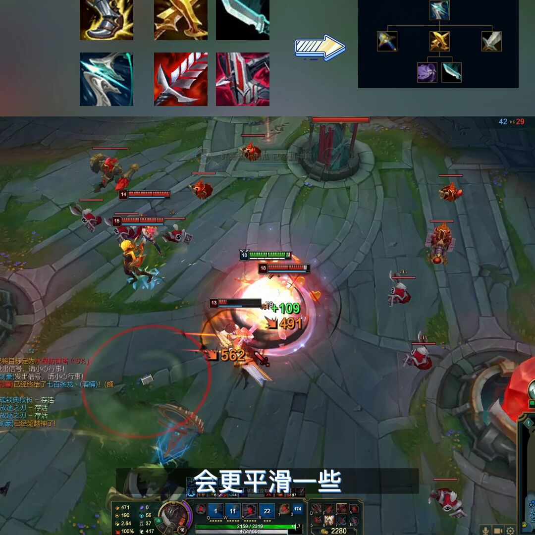 →第二套出装是基于狂风之力以及银血的改版。狂风之力现在的合成方式是由小黄叉来合成了,而饮血在血量健康的时候,可以提供一个额外的攻击力。