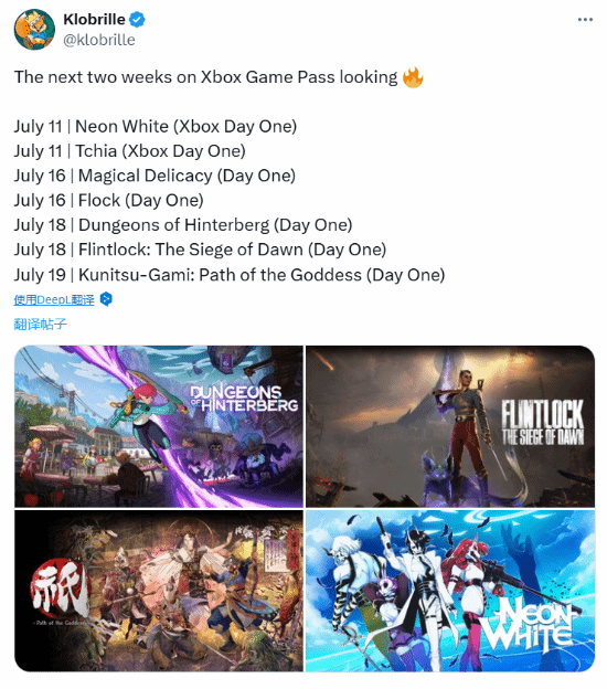 近日,X博主klobrille盘点了7月份加入首日XGP的七款游戏,其中包括《燧石枪:黎明之围》、《祇:女神之路》等,一起来看下。