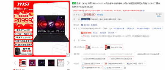 20999元!微星泰坦笔记本14900HX+4070配置上新