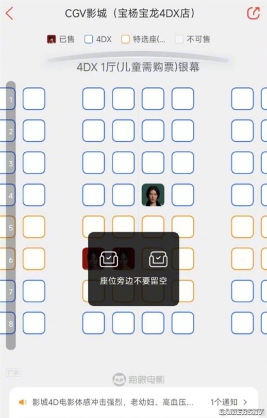 单身人士买票不能选C位?影院回应:优化座位利用率