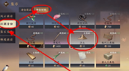 5、在江湖身份中有身份商品和身份材料。