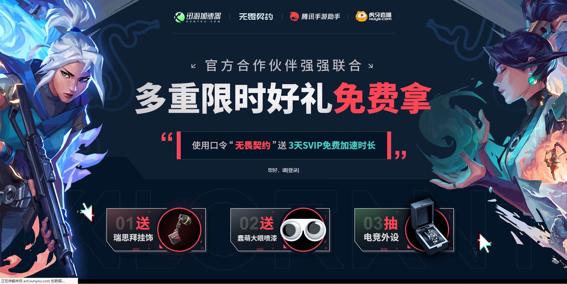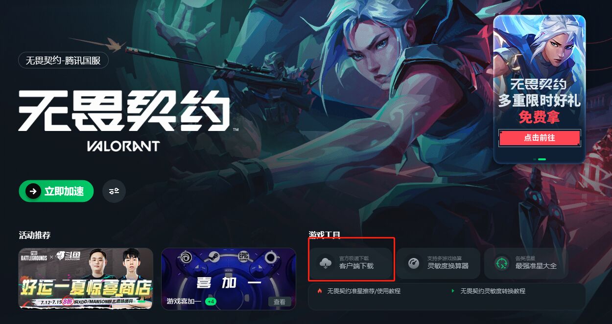 最后针对此次无畏契约国服上线,迅游加速器官方也是准备了不少活动,有比如喷漆、挂饰以及电竞设备等免费拿,在迅游加速器兑换码一栏输入口令“无畏契约”还可获取3天的VIP免费加速时长。