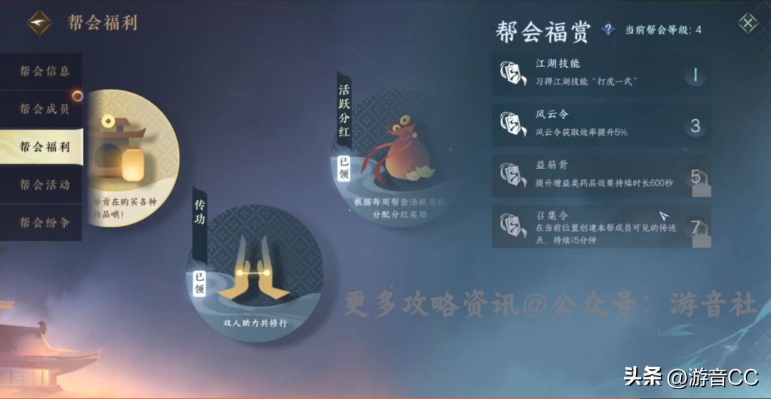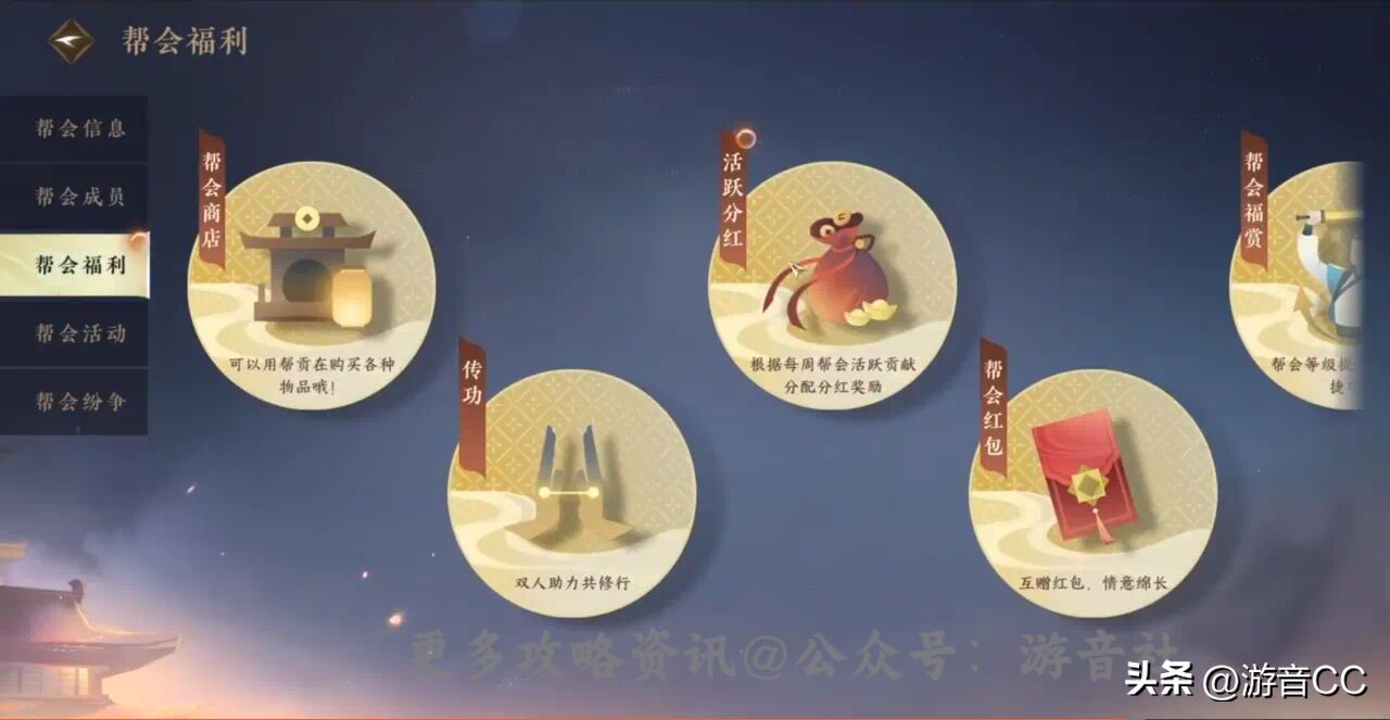 帮会福赏:帮会等级提升,可以体验更多的便捷功能