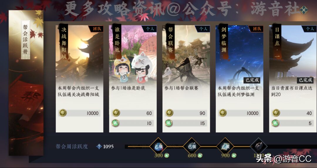 2. 帮会没有明确的帮会贡献榜单,需要每个人将自己的活跃册页面截图或任务完成截图,才能有效统计帮会任务进度