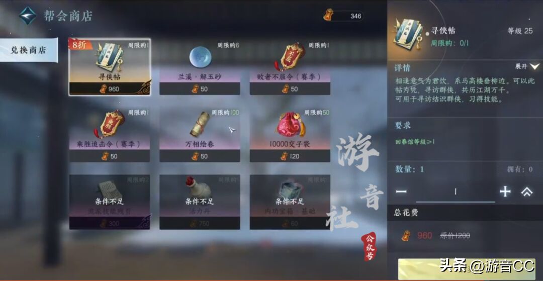 回春馆:升级后,可以解锁帮会商店内的游戏物品,等级越高,可兑换的物品种类和数量更多