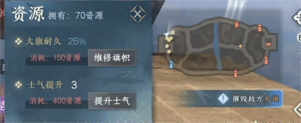当然也有人看到物资点的存在,但却认为不需要太重视,在后期需要时候再去重视的话,就很迟了,因为维修旗帜和提升士气都每提升一级或维修一下,下一阶段都需要更多的资源量。