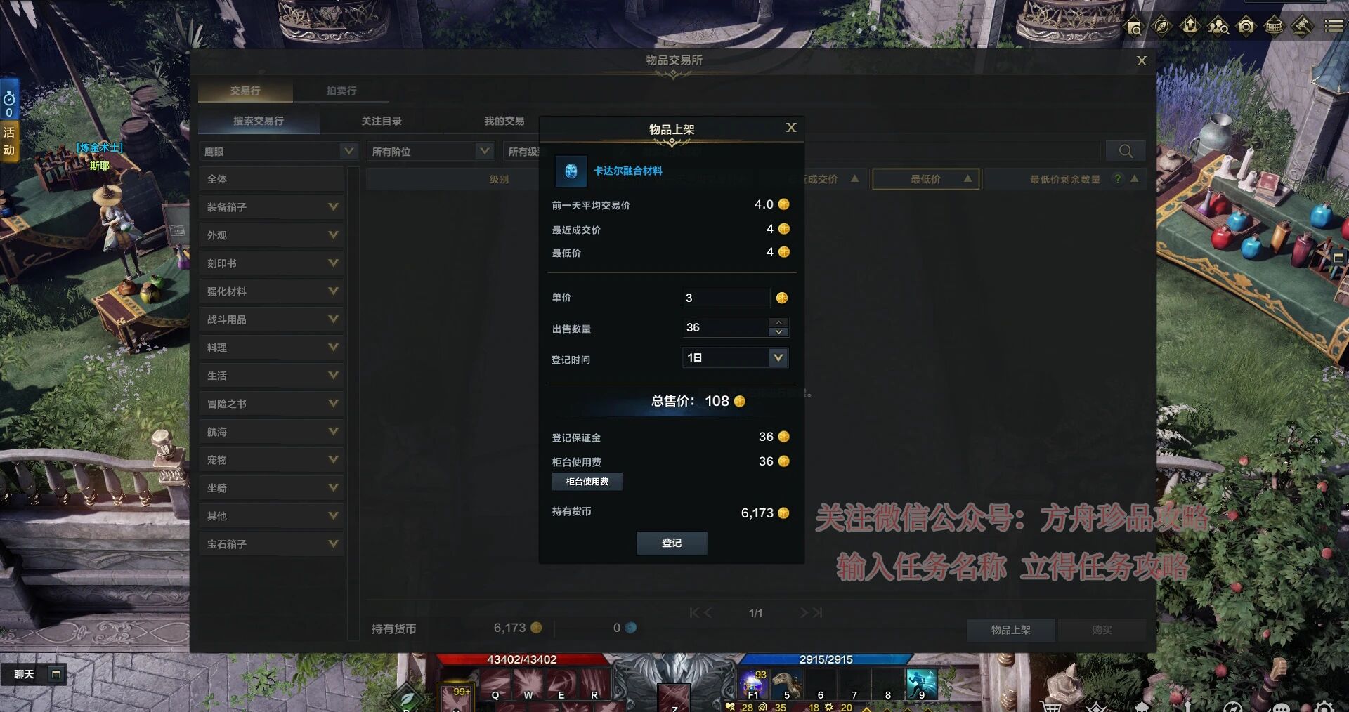 物品交易所:在交易行出售各类游戏物品或者在拍卖行出售装备宝石获得金币