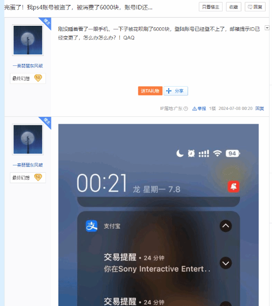 PS商店绑定银行卡、支付宝支付虽然方便,但被盗号就会面临巨大损失。近日,一位吧友描述了自己的经历。