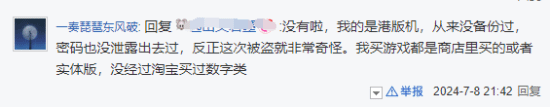 该用户表示,自己没有备份过账号,买游戏都是官方商店或者实体版,没有在买过数字游戏,这次被盗号十分奇怪。
