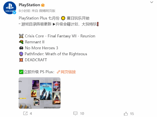 7月港服PS+二三档会免新增游戏公布,有《最终幻想7:核心危机 重聚》《遗迹2》等。