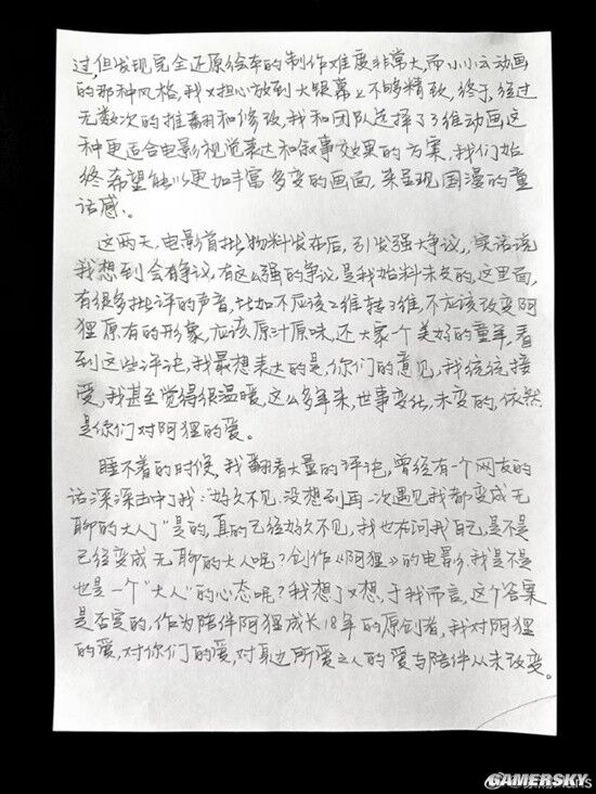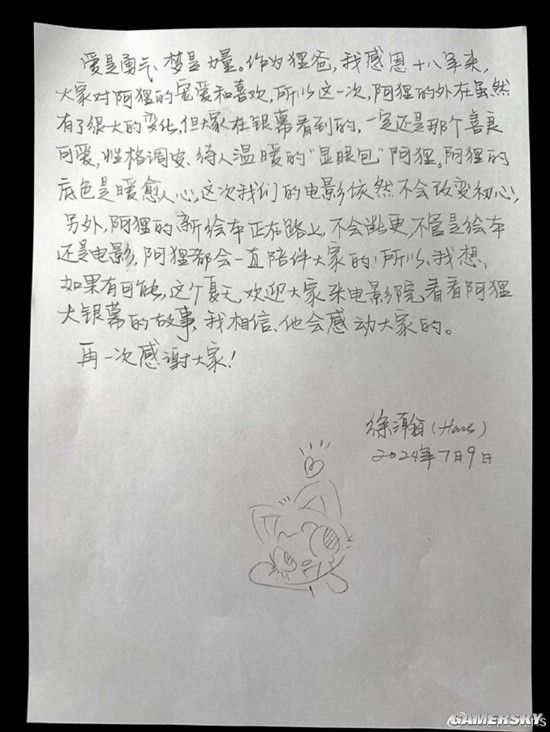 该片导演、阿狸绘本作者@徐瀚Hans发文回应,表示从2014年开始筹备大电影,经过无数次的推翻和修改,选择了三维动画这种更适合电影视觉表达和叙事效果的方案,来呈现国漫的童话感,没想到会有那么大争议:“你们的意见,我统统接受。”