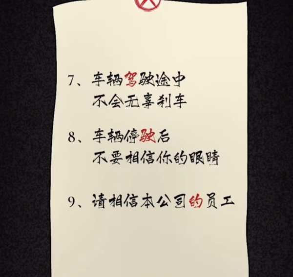 9、车子停止后在垃圾桶中找到纸条查看规则。