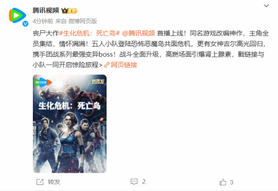 《生化危机死亡岛》上线腾讯视频!但要付费才能观看