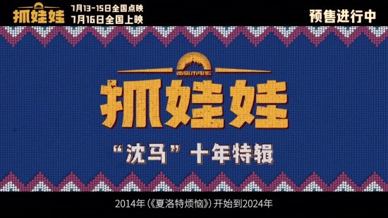 喜剧电影《抓娃娃》官方近期推出了“沈马”主题十年特辑,从2014年的《夏洛特烦恼》到即将上映的《抓娃娃》,沈腾马丽也迎来大银幕搭档的第十年,“沈马”默契达到新高度。电影将于7月13日-15日全国点映,7月16日全国上映,敬请期待。